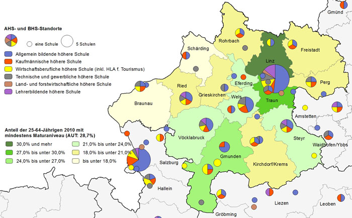 Bildungsniveau 2010 und Standorte von Allgemeinbildenden höheren