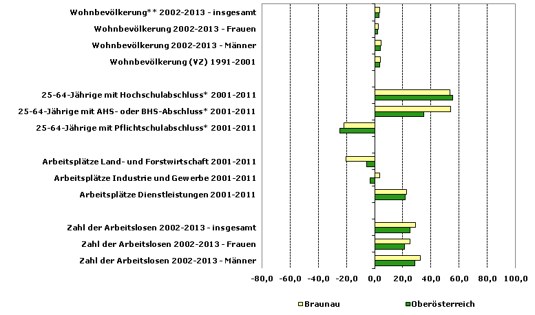 Der Arbeitsmarktbezirk Braunau entspricht dem politischen Bezirk Braunau am Inn und besteht aus 46 Gemeinden, darunter drei Städte (Altheim, Braunau am Inn und Mattighofen).
