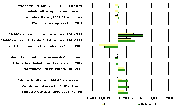 Der Arbeitsmarktbezirk Murau entspricht dem politischen Bezirk Murau und besteht aus 14 Gemeinden, darunter zwei Städte (Murau und Oberwölz).