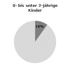 Im Berichtsjahr 2014/15 wurden in Vorarlberg 10% der 0- bis unter 2-jährigen Kinder und 77% der 2- bis unter 5-jährigen Kinder in einer Kinderbetreuungseinrichtung betreut.