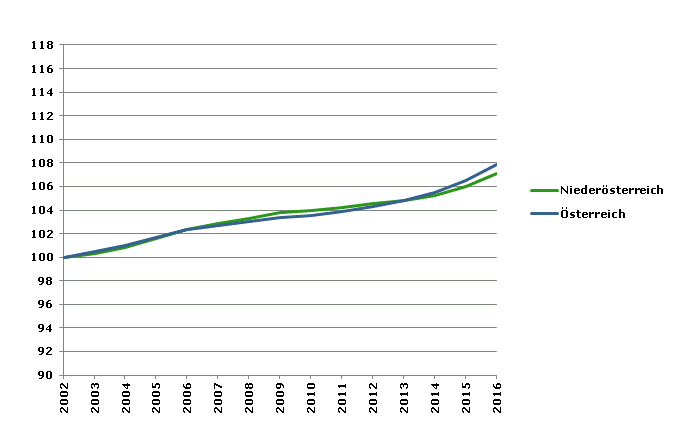 Die positive Entwicklung hat sich auch nach 2001 fortgesetzt. Zwischen 2002 und 2016 ist die Bevölkerungszahl (laut Statistik des Bevölkerungsstandes) in Niederösterreich um weitere 7,1% gestiegen (Österreich: +7,9%).