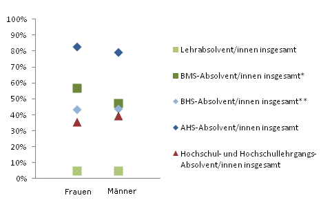 dieser Anteil ist bei den Lehrabsolventinnen und bei den Hochschul-Absolvent/innen am höchsten.
