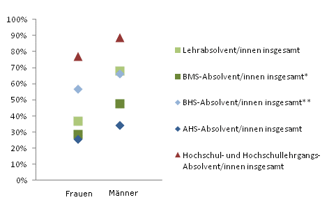 Lehrabsolventinnen und den Hochschul-Absolvent/innen am höchsten.