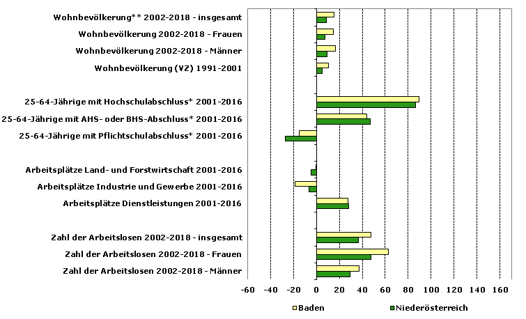 Der Arbeitsmarktbezirk Baden entspricht dem politischen Bezirk Baden und besteht aus 30 Gemeinden, darunter fünf Städte (Bad Vöslau, Baden, Berndorf, Ebreichsdorf und Traiskirchen).