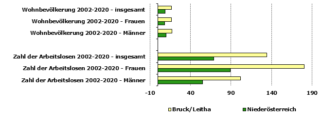 Der Arbeitsmarktbezirk Bruck/Leitha entspricht dem südöstlichen Teil des politischen Bezirks Bruck an der Leitha einschließlich der burgenländischen Gemeinde Bruckneudorf (Bezirk Neusiedl am See) und besteht aus 21 Gemeinden, darunter drei Städte (Bruck an der Leitha, Hainburg a.d. Donau und Mannersdorf am Leithagebirge).