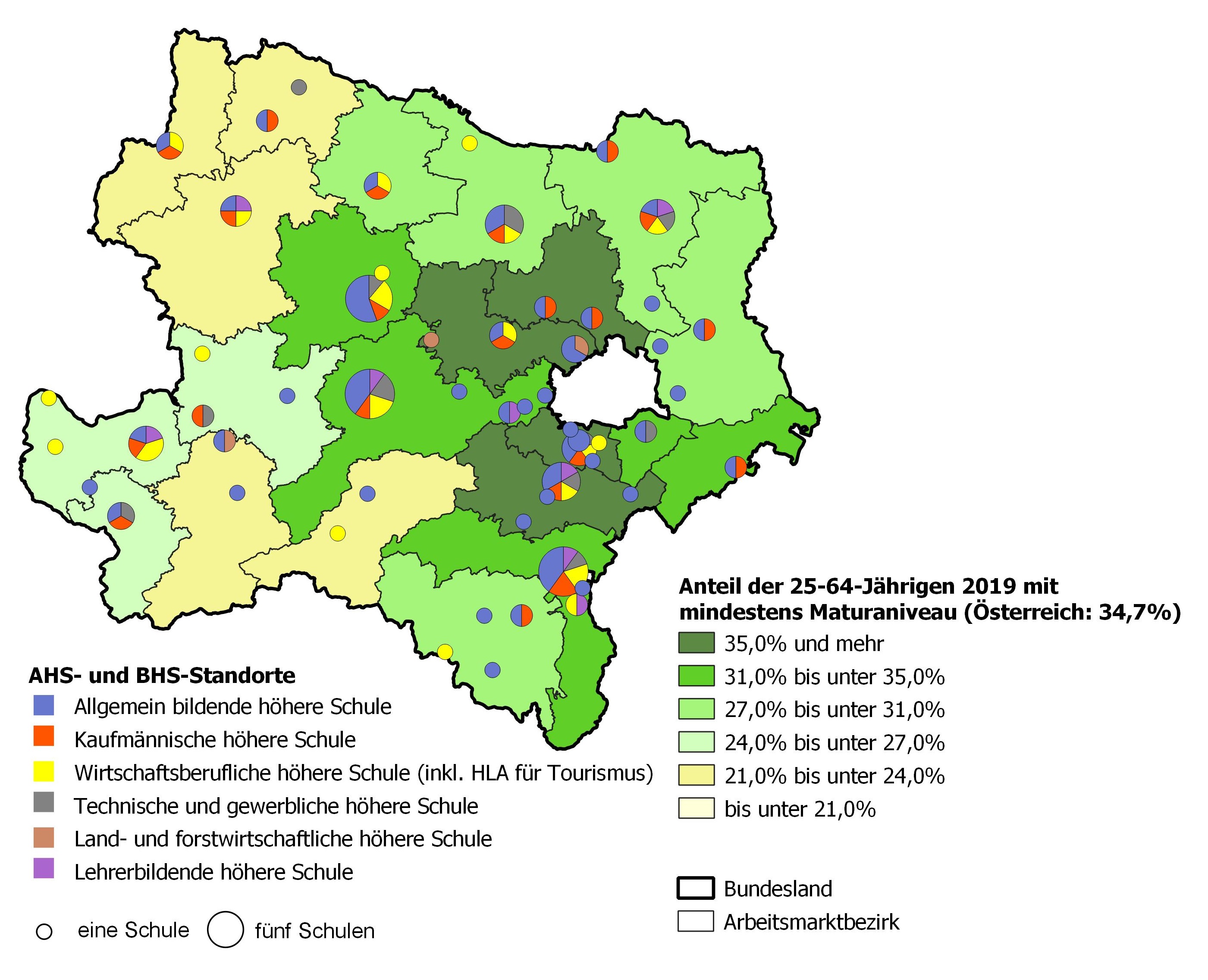 Bildungsniveau 2019 und Standorte von allgemeinbildenden höheren