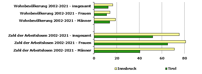 Der Arbeitsmarktbezirk Innsbruck entspricht den politischen Bezirken Innsbruck-Stadt und Innsbruck-Land und besteht aus 66 Gemeinden, darunter zwei Städte (Innsbruck und Hall in Tirol).